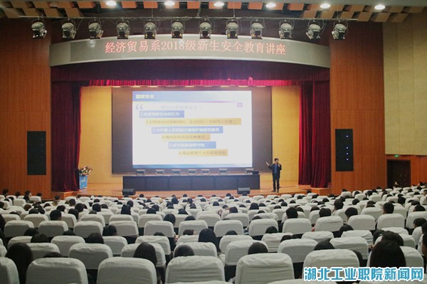 新闻网讯(图/青亚莉文/雒娴静)10月9日晚,经济贸易系在会议中心举办了2018级员工安全教育讲座。讲座特邀院保卫处处长胡现敏主讲,经贸系辅导员和全体新生参加讲座。