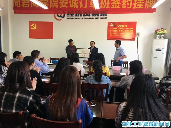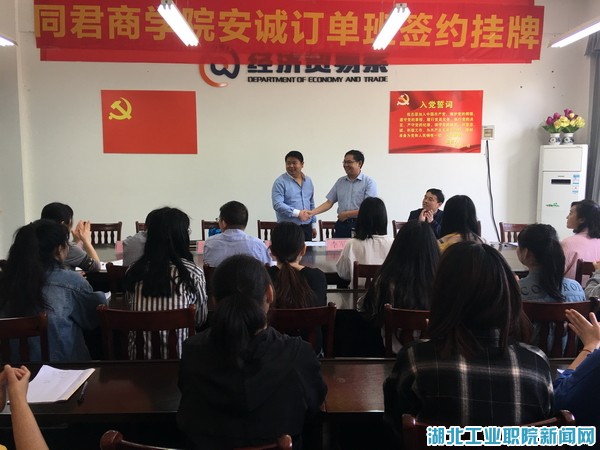 新闻网讯(通讯员陈敏)5月23日上午,“上海安诚财务”订单班签约仪式在经济贸易系3409会议室举行。上海安诚企业管理有限公司总经理李留青、同君商公司副经理李军伟,湖北工业职院副经理李军、经贸系师生代表参加签约仪式。仪式由经贸系主任孔祥银主持。