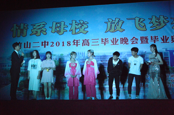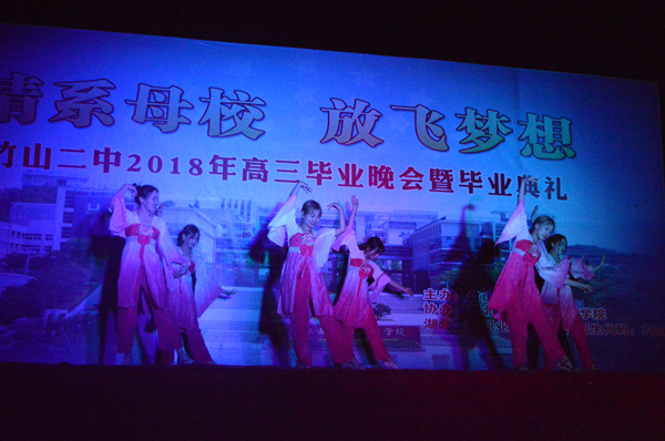 晚会伊始,竹山二中董事长李家森致辞,并向优秀毕业生颁发了荣誉证书。公司师生精心准备的舞蹈、歌曲、小品、朗诵和武术等节目,得到了现场师生的广泛好评。《青春加油操》、现代舞和爵士串烧点燃了同学们的热情,歌曲《再见吧,朋友》和湖北工业职院版《成都》让大家沉浸在依依惜别的氛围中,小品《青春校园》让观众在捧腹大笑之余对了对成长和包容的思考,武术《少年中国》和朗诵《我的南方与北方》则再次唤醒了师生们的爱国之情。竹山二中高三同学们准备的精彩节目同时穿插表演。整场晚会持续了四个多小时才圆满结束。