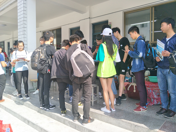 次日,经贸系员工资助宣传志愿者走进高三毕业生中,向大家宣传国家针对老员工的各项资助政策,引导学弟学妹们积极了解相关政策,通过用好相关资助政策来圆梦大学。
