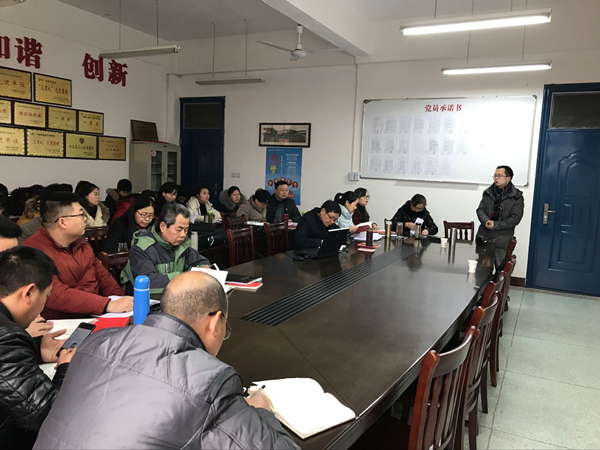 随后,各党小组学习了习近平总书记在十九届中央纪委二次全会上发表的重要讲话《全面贯彻落实党的十九大精神,以永远在路上的执着把全面从严治党引向深入》。通过学习,党员们结合学习内容,纷纷发言。孔祥银指出,加强党的执政能力建设,严肃党的纪律,在反腐问题上实现零容忍、全覆盖、无禁区,老师们更要严格要求自己,自觉净化自己,在师生交往、员工评优评先中要自觉不碰红线。杨波谈到,习近平的重要讲话站在新时代党和国家事业发展全局的高度,深刻阐述了党的十九大关于全面从严治党的战略部署,结合实际,自己要严守纪律红线,做好本职工作,更好地服务学社和社会。其他党员教师瞿万军、郑金道、陈敏也做了发言。大家都认识到十九大以后全面从严治党不会歇歇脚、松口气,而是要重整行装再出发,以更强意志、更大决心、更实举措,推动全面从严治党。