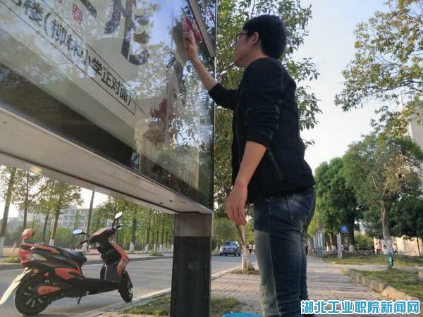 新闻网讯(文/鲁艳萍图/任昱)创建一份文明,收获一份温馨,争做文明学子,共建文明校园。4月19日下午,经济贸易系员工党支部组织全系员工党员、入党积极分子在校园内开展“共建美好环境同创文明校园”志愿活动——清洁公司路牌志愿活动”。