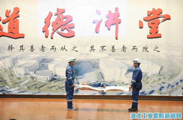 讲堂在老员工艺术团和山之声组合深情演唱的歌曲《让世界充满爱》中拉开帷幕,并按照唱德、立德、明德、品德、传德、润德等环节依次进行。在立德环节,师生们观看了《十堰山盟应急救援队》视频短片,十堰山盟应急救援队千里驰援四川雅安芦山抗震救灾、科学实施山野救援、开展日常训练的场景真实地呈现在大家面前。