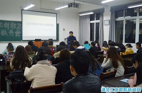 新闻网讯(文/王玉林图/贺亚宁)为提高员工安全法制意识,经济贸易系于12月15日晚在3425教室举行了安全法制专题讲座。讲座特邀公司保卫处处长胡现敏主讲,经贸系党总支书记张玲、经贸系各班员工干部聆听了此次讲座。