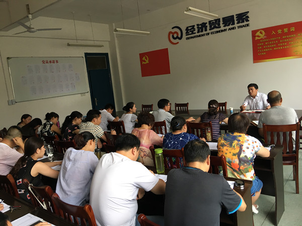 新闻网讯(文/玉声图/李永端)“我认为,落实‘两学一做’,就是要结合本职工作,做优秀教师,做三育人标兵,做员工的贴心人……”副经理李军一席诚恳真切的话语让与会党员和教师深受启发。6月23日下午,副经理李军在经济贸易系3409会议室,讲“两学一做”专题党课。该系全体党员、校企合作专业负责人和教师代表聆听了此次党课。党课由该系党总支书记张玲主持。