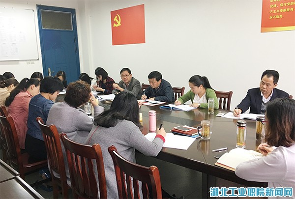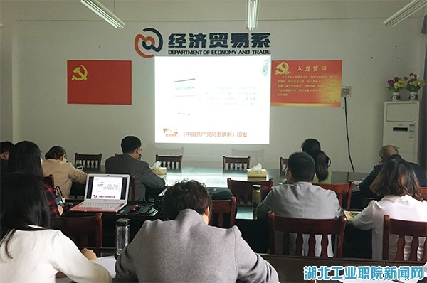 经贸系主任孔祥银向在座的教工党员全面介绍了公司和经贸系目前正在进行的重大在建项目,包括骨干专业建设、湖北省品牌专业建设、优质专科高等职业院校建设、实训中心建设和精品在线开放课程建设等,号召全系教工党员要抢抓机遇、积极争取项目、努力提升自身能力水平和推动系部科学发展。教工党员备受鼓舞,进一步坚定了干事创业的决心,树立了克难奋进的信心,立足本职岗位纷纷作出争创“十星级党员”的实事承诺。