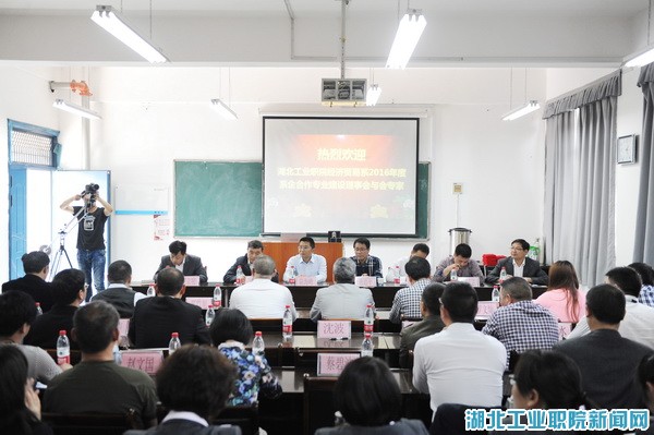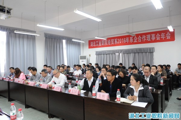 新闻网讯(文/罗立明图/曾刚)4月28日下午,经济贸易系2016年度系企合作理事会暨专业建设研讨会在3425会议室隆重召开。经理陈海峰、副经理李军,十堰市会计管理局副局长曹浩平、太和医院副经理王定奎,十堰市亿脉科技有限公司董事长冯建、十堰市谷润房地产运营有限公司总经理罗文灿等20多家企事业单位代表出席了会议。会议由经贸系副主任罗立明主持。经贸系全体教师参加会议。