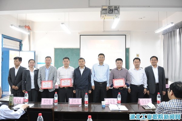 经理陈海峰、副经理李军、校企合作处处长徐耀鸿为企业家代表颁发经济贸易系“客座教授”聘书。