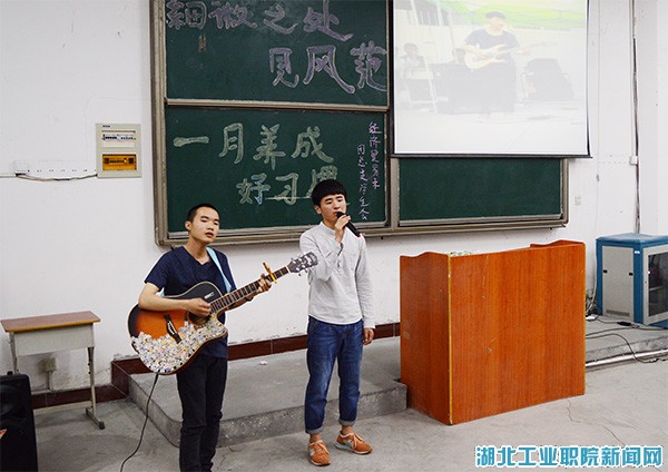 活动开场,由信息与智能工程系空竹协会的张子腾同学,为大家分享了他常年坚持练空竹的心得,他表示要养成好习惯就要坚持自己的兴趣,随后现场展示了空竹表演。随后,天一乐团负责人辛家伟、蒙祥分享了他们入校后从零基础开始习练乐器的心得,并现场演绎了精彩的吉他乐曲《光辉岁月》。汽车系员工会体育部长杨雪芝与同学们分享的是自己每天早上起来都要把被子叠的整整齐齐的习惯。经贸系电子商务专业员工韩正希,分享了自己在专业实践中因为要拍摄好商品展示照片,不断学习摄影技巧的习惯。经贸系员工、书画协会会长朱亮则告诉同学们,为了写一手好字,自己每天都会坚持写300个毛笔字,并且现场写下了“清风入怀”四个书法大字与现场的同学们共勉。经贸系员工、街舞社的龚忠文,表示每天晚上在慧智广场都有他练舞的身影,希望同学们每天坚持一点点就会积少成多,离自己的目标就会越来越近。