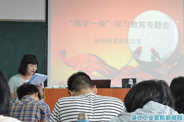 新闻网讯(通讯员郝静)6月2日,经济贸易系党总支在3425会议室举行“两学一做”专题学习活动。会议由经贸系教师党支部书记郝静主持,全体教师党员和在校员工党员参加本次学习。