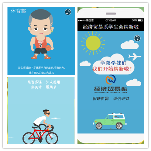 这个突破了传统的创新宣传方式,利用手机网页平台制作了一段小动画,动画内容精短小巧、幽默诙谐、动感十足,瞬间抓住了同学们的眼球,吸引了他们的注意力。其中组织部的“足智多谋,知人善用,集英才,展风采”,生活部的“我是革命的一块砖,哪里需要哪里搬”等宣传语简洁明了,将部门的职责充分展示了出来。同学们可以通过扫二维码进入网页填写报名信息。