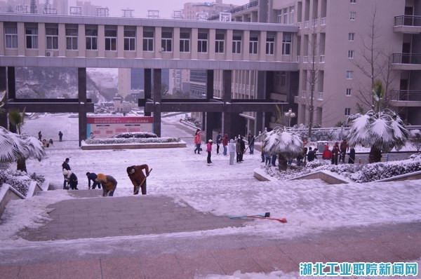 (通讯员杨波 陈亚楠)从1月27日起,十堰市普降大雪,公司校园内也铺上了厚厚的积雪。为保障师生进出教学楼的安全,经济贸易系团总支员工会的同学们,于28日清晨组织自愿扫雪活动,在上课前为广大师生扫除了教学楼门前的积雪,为师生们出行带来了极大的方便。
