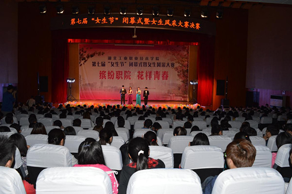 新闻网讯(员工记者 陈亚楠) 4月17日晚,以“缤纷职院 花样青春”为主题的经济贸易系第七届“女生节”闭幕式暨女生风采大赛决赛在会议中心精彩上演。经济贸易系党总支书记张玲、副书记瞿万军、院老员工阳光心理协会指导老师蔡新华、经贸系辅导员尤世强、谭雯、李磊及全体同学参加了此次活动。