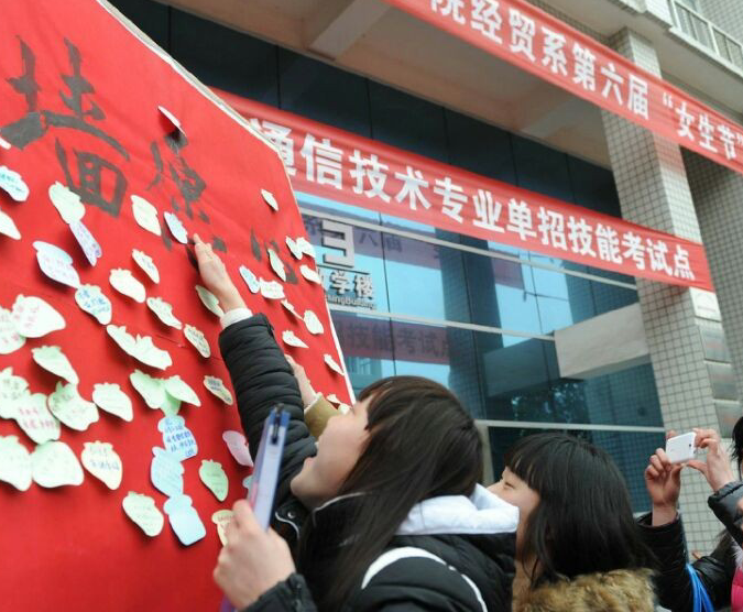 随后,在场女生有序在条幅上签名,并将自己的心愿卡帖在“心愿墙”上,现场氛围十分浓厚。