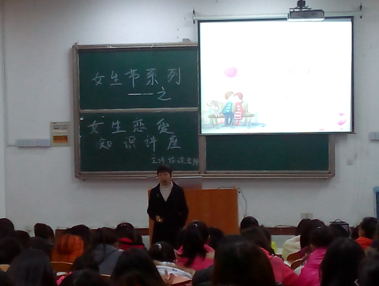 (刘姗供稿)3月12日晚上六点半,经济贸易系在3101教室为全系女生举办《女生恋爱知识讲座》,主讲是老员工心理健康教育与心理咨询中心主任徐瑛老师,此次讲座是第六届女生节系列活动之一。