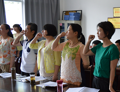 为了让所有党员始终铭记党的誓言和党员的义务,严格要求自己,做一名合格的共产党员,全系党员师生面对党旗宣誓,重温入党誓词。随后会议就董傲兰等12名同学是否如期转正和刘全红等9名员工是否接收为预备党员进行了讨论。申请人向组织汇报了自己对党的认识、入党动机、日常表现以及获奖情况,表明想加入中国共产党的坚定决心和强烈愿望,随后由入党介绍人对申请人一年来的培养考察情况做了介绍,对同学的学习、生活、工作都做了客观的评价,对其能否入党表明态度。组织委员宣读了对发展对象的政治审查情况,最终通过全体党员的讨论和无记名票决,同意董傲兰等12名员工如期转正,愿意接收刘全红等9名员工发展成为预备党员。