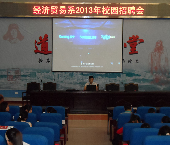 9月13日,在公司就业指导中心的大力协作和经济贸易系的积极组织下,经贸系2011级员工顶岗实习暨就业招聘会在学术报告厅成功举行。北京链家房地产有限公司、京东商城武汉分公司、武汉大道物流有限公司、十堰苏宁电器有限公司等6家知名企业参加了招聘会,为该系2011级4个专业的420余名毕业生提供了100多个与本专业对口的岗位。