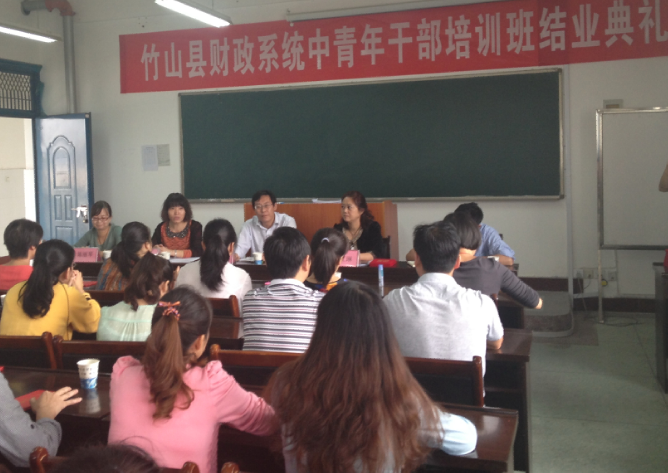 经过一个月紧张而又充实的学习,竹山县财政系统中青年干部培训班在经济贸易系3425教室举行结业典礼。竹山县会计管理局局长梁逸川、公司社会培训与成人教育中心主任杨红琳、经济贸易系主任孔祥银、副主任陈丽琴出席了典礼。经济贸易系党总支书记王俐凤主持了大会。