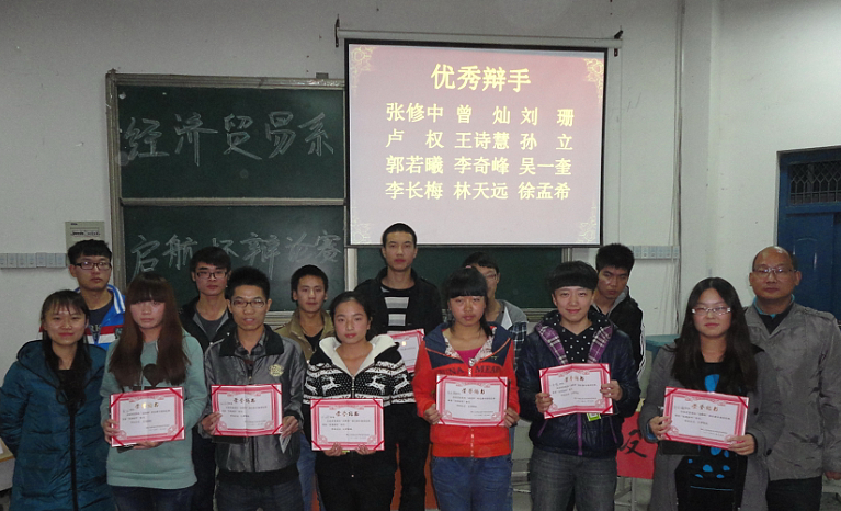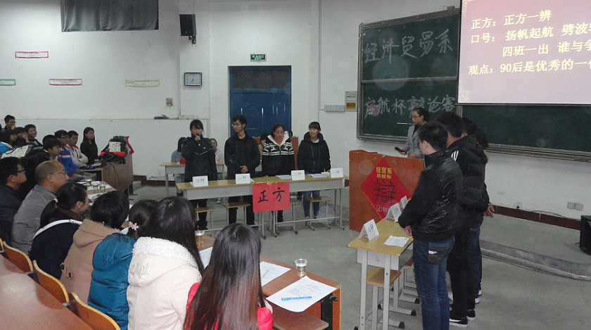 11月15日晚18:30,经贸系“启航杯”辩论赛决赛在3101教室举行。党总支副书记瞿万军、学工办主任杨波、辅导员杜军、李永端、班主任郑金道等老师出席了大会并担任评委,全体大一同学到场观看。