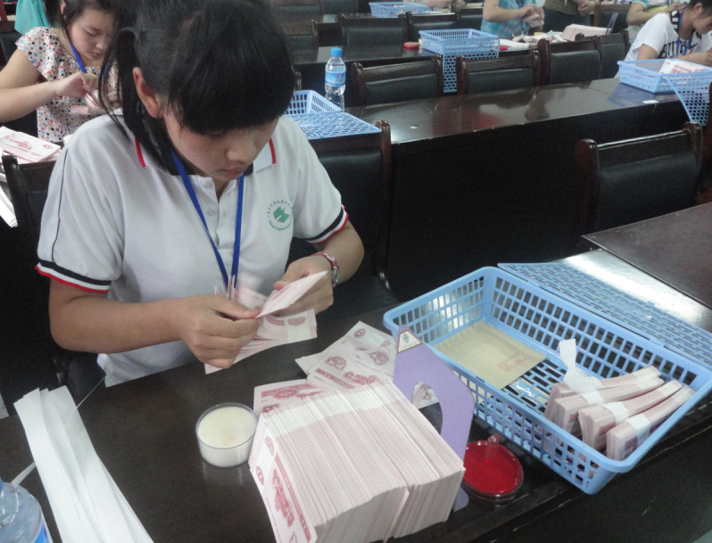 5月25日早上7点半,选手开始检录,会计财务技能比赛项目正式开始,选手们要在三小时内运用科目汇总表核算形式完成二十一笔经济业务的手工帐的填写;随后各十分钟的点钞和点打传票比赛,主要检验选手们会计基本技能的熟练程度和职业素质的耐心程度;长达三小时的会计电算化考试考查同学们对财务软件畅捷通T3财务软件系统的操作应用能力。比赛总时长达七个小时。
