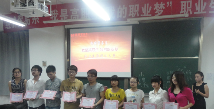6月5日晚,经贸系在3301教室举办了“我是高职生,我的职业梦”为主题的职业生涯规划大赛,有各班推选的15名同学参加了此次比赛。院就业指导中心黄镜潮主任、陈明超科长、经贸系党总支书记王俐凤、副书记瞿万军、副主任陈丽琴、员工办主任杨波、辅导员王致兰、李永端老师出席活动并担任了评委。