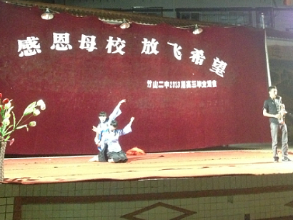 为了加强与招生区域的联系,进一步做好招生宣传工作。6月8日晚,公司副经理李军、经贸系主任孔祥银和招生组老师受邀参加竹山二中高三毕业晚会。