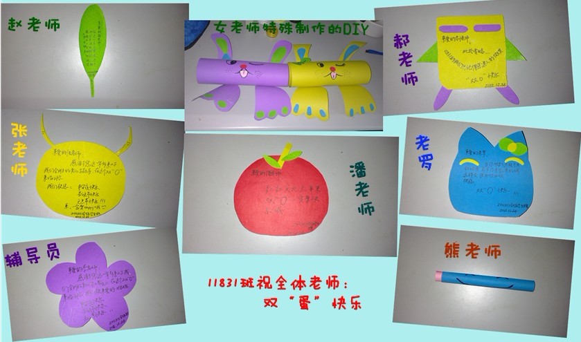 在圣诞节来临之际,为了表达同学们对任课老师的感激之情,11831班同学自己动手,亲手制作各种卡片,表达他们的心意。所有的老师都很感动,非常感谢同学们独具匠心的礼物。