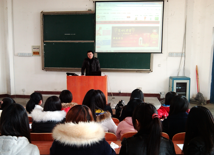 校企合作企业----十堰科恩网络传媒有限公司总经理马军在会上向同学们详细介绍了“正钟网”项目的主要内容和运作模式,希望所有2011级同学踊跃参加,将他们所学的专业知识运用到实处。届时该公司专业人士将会对同学进行培训、指导。最终,给通过考核的同学提供“毕业即就业”的机会。同时,他还向同学们介绍了电子商务专业的就业前景和现状,并就同学们感兴趣的实习、就业等问题进行了互动交流。