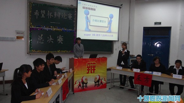 参加决赛的队伍分别是正方市场营销“Super Star”代表队,反方物流管理“激情飞扬”代表队。比赛伊始,双方辩手别出心裁的自我介绍,瞬间点燃了现场师生的热情。立论环节,双方通过大量例证来阐释己方观点,条例清晰,逻辑严密;驳论环节,双方辩手提问尖锐,回答中肯,反驳有力;自由辩论环节,双方辩手妙语连珠,你来我往,牢守己方观点;双方四辩进行总结陈词时,说理透彻,引人深思。尖锐的问题,精简的答辩,引得场下师生叫好连连、掌声雷动。最后市场营销“Super Star”代表队以其机敏的反应、流畅的语言、默契的配合获得了冠军,评委老师进行了总结点评。