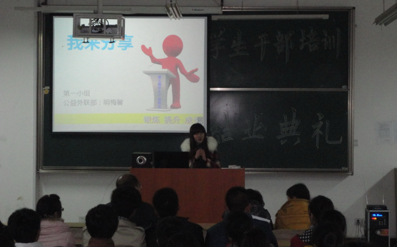 在结业典礼上,参加培训的八个小组分别选派一名同学代表发言,他们从自身角度出发,结合干部培训班所学、所思、所悟,谈了今后如何将在此次培训班学到的各种技巧与方法运用到学习生活中,更好地为同学们服务。会议宣读了优秀学员名单并颁发了获奖证书。瞿书记在最后的讲话中总结了此次员工干部培训的过程与意义,希望同学们在以后的学习、工作、生活中要以一名优秀干部的标准来严格要求自己,以身作则,不断提升自我管理、自我教育、自我服务、自我发展能力。