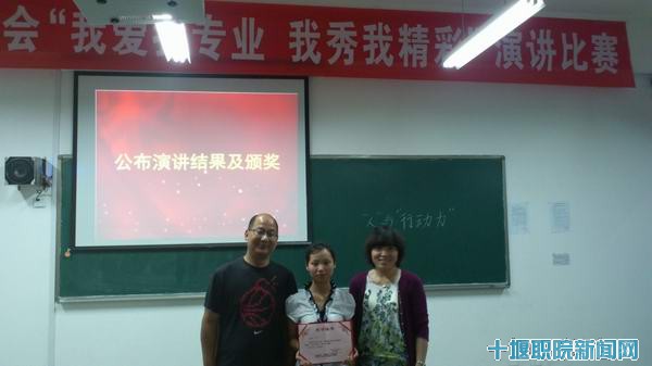 自愿报名的18名选手,紧紧围绕演讲主题,并结合今年4月份在武汉大道物流公司的实习感受,阐述了各自对专业的认识,并表达了学好专业知识的信心。最终,来自2011812班的陈帆同学凭借饱满的热情、流利的语言和丰富的演讲内容赢得了评委的一致好评,获得此次比赛的一等奖。与会领导与老师给获奖员工颁奖并留影。