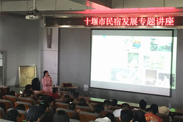 十堰市知名民宿企业桃源人家联合创始人王珊做了题为《走进乡村走进民宿》的报告,就地方民宿的发展思路、经营模式和未来趋势做了详细介绍,并提出了将当地民俗文化和地域特色融合、发展民宿旅游产业的想法。王珊丰富的实践经历和生动幽默的语言特色给大家留下了深刻印象。