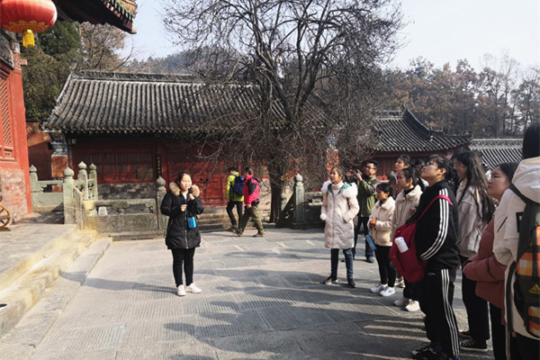 随后,师生们来到遇真宫、玉虚宫、紫霄宫、金顶等景区,旅游管理专业兼职教师、武当369国旅徐勇和校内教师司兴政、祝钦共同开展现场教学,同学们分小组进行实地讲解练习并接受现场点评。这种将课堂搬到景区,让课本上的知识再现于现场实践的生动教学方式,激发了同学们的学习兴趣,提高了同学们的专业实践能力。