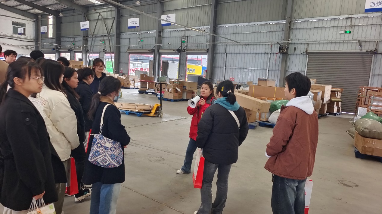 交流会后,师生参观了道通物流园区,同学们观看了韵达、德邦、壹米滴答、大道物流等企业的入库、分拨、出库等流程,学习和了解了大道物流集团银河信息系统的应用,也认真聆听了职业经理人宝贵的职场经验分享。