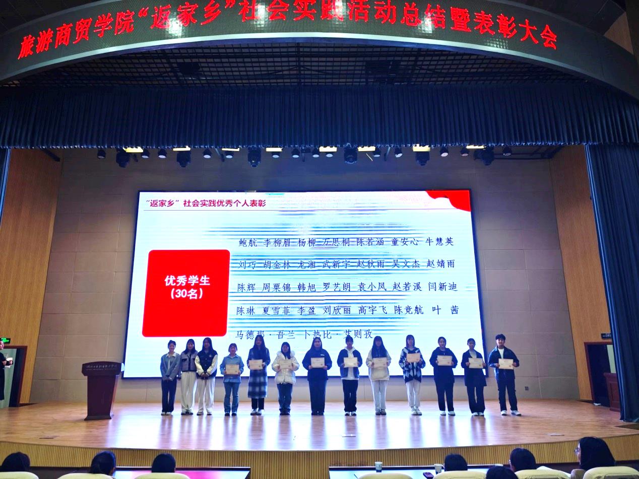 会议由院员工办陈敏老师主持。首先总结了旅商公司“返家乡”社会实践活动整体开展情况,表彰30名员工为“返家乡社会实践优秀个人”、5名教师为“返家乡社会实践优秀指导教师”。