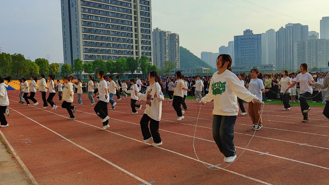 花式跳绳班的同学们展示了他们灵活的身手和协调的能力,表演充满了青春活力和阳光气息,演绎的是拼搏,传递的是力量。