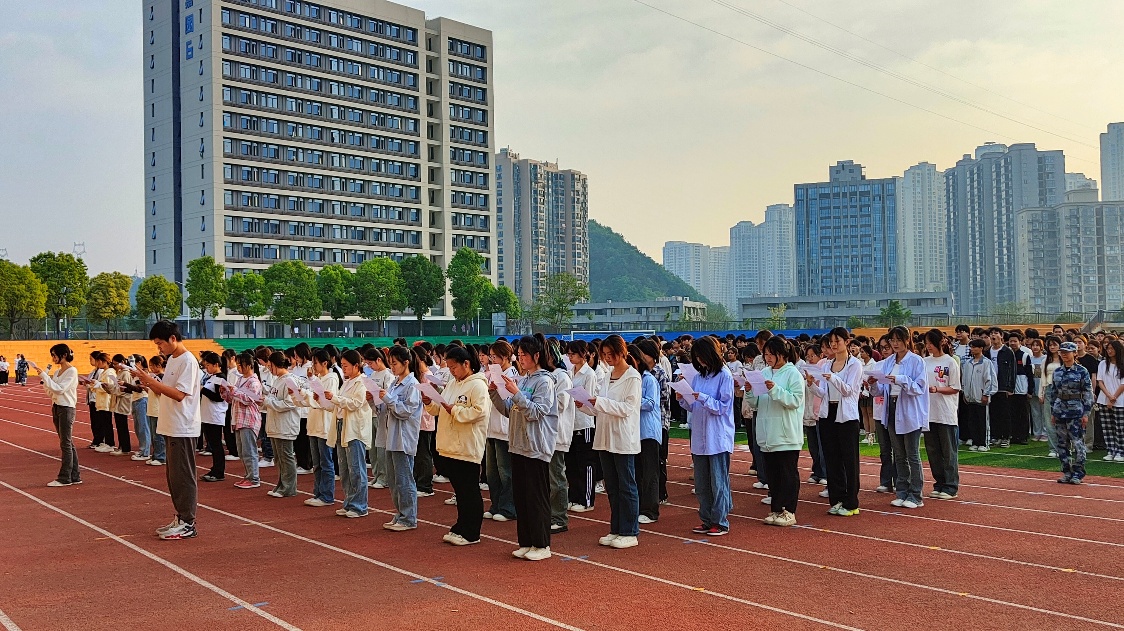 为展示修身计划阶段性成果,宣传世界地球日,提高同学们的环境保护意识,践行绿色低碳理念,2024年04月22日,betway西汉姆联官方网站在北区运动场举行主题升旗仪式。betway西汉姆联官方网站全体师生参加活动,仪式由陈敏老师主持。