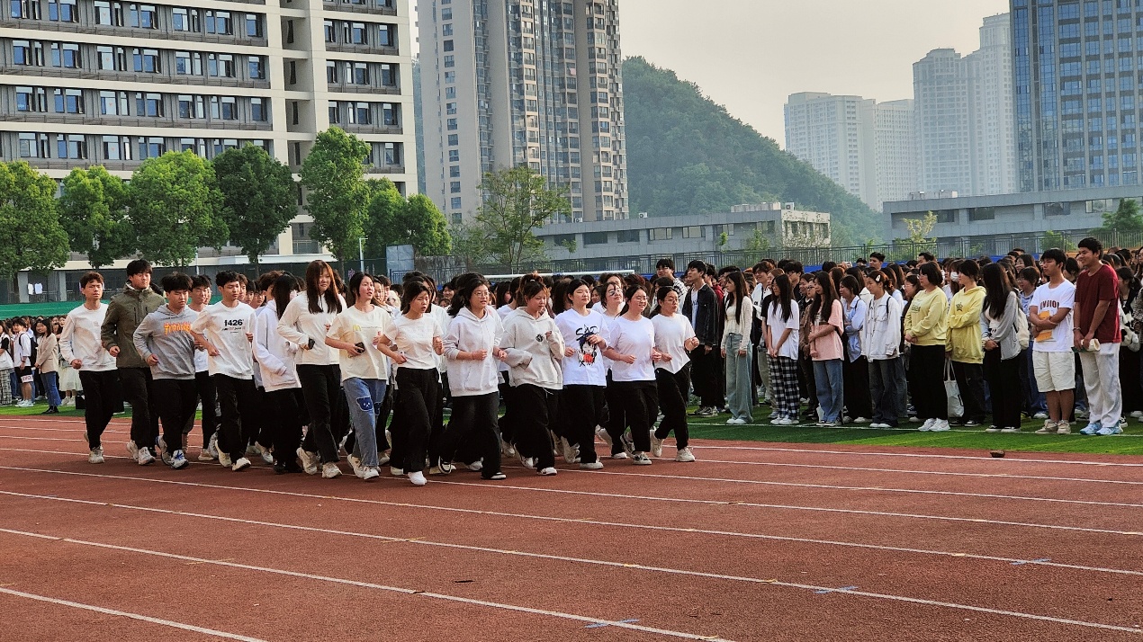 晨跑班的同学们以整齐的步伐和昂扬的姿态进行了跑步展示,他们的健康活力和团队合作精神赢得了在场师生的阵阵掌声。