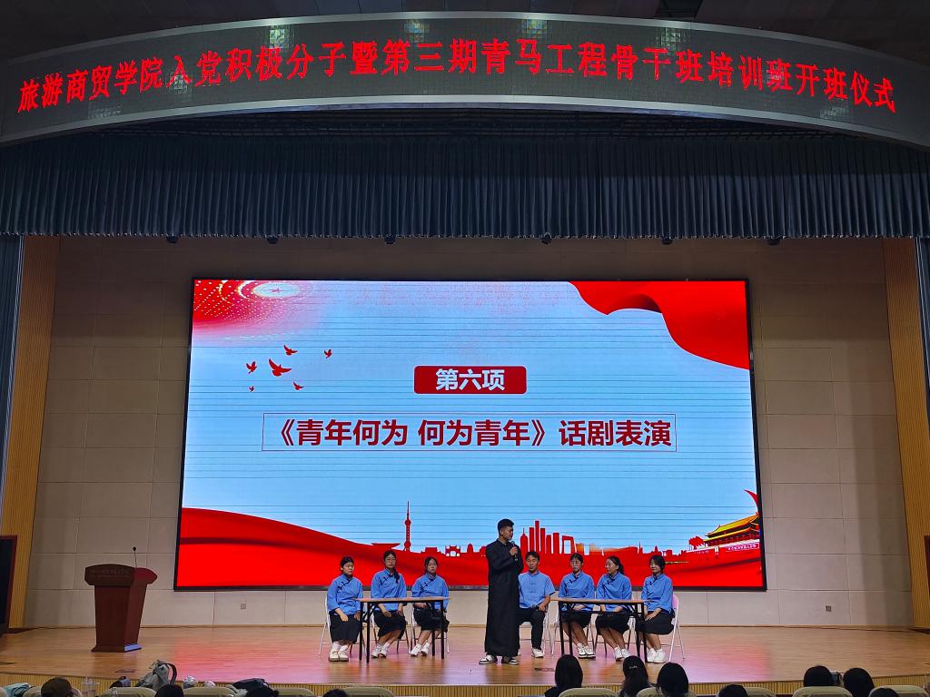 开班仪式后吴文杰等同学为大家带来《青年何为何为青年》的话剧表演,“生而逢盛世,青年当可为”,话剧演员们的一声声呐喊无不鼓舞和激励着在场的每一位青年学子奋发向上,始终保持昂扬的斗志做好每一件小事,完成每一项任务,履行每一项职责,在奋斗中彰显青年精神。