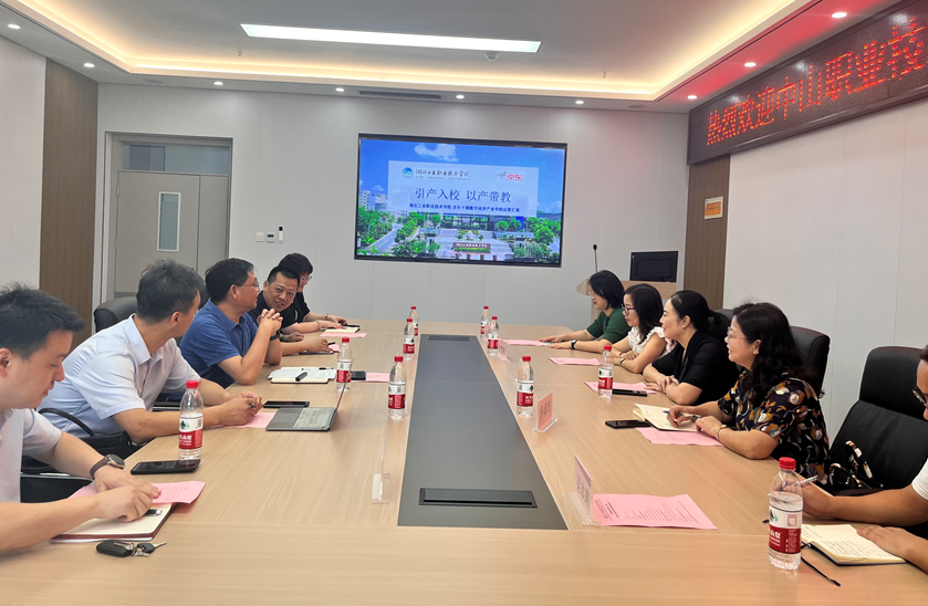 王贵兰对对公司办学理念、办学成果和办学条件给予高度评价,对京东产业公司产教融合项目给予肯定,并分享了中山职业技术公司在产教融合方面的建设现状。双方围绕产教融合的教学管理、考核机制和教学改革等方面展开了深入探讨,通过交流,双方均肯定了产教融合新模式在促进高校内涵建设上的关键作用。