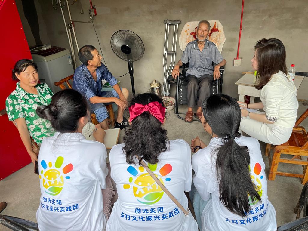 (图为实践队员正在采访抗美援朝老兵骆丕训 吴琦摄)
