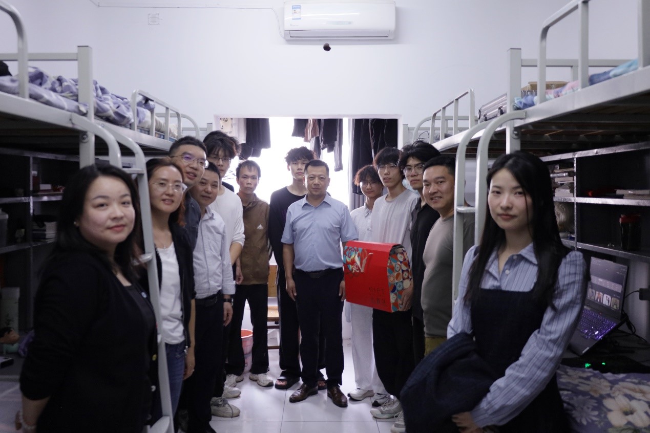 “假期有什么安排?”“学习生活上有没有困难?”“祝大家双节快乐!”——走访过程中,老师们与同学们亲切交流,细致了解大家的留校生活与具体需求。宿舍里洋溢着温馨融洽的氛围,一声声关怀、一句句问候,传递出公司对学子们的深切牵挂。