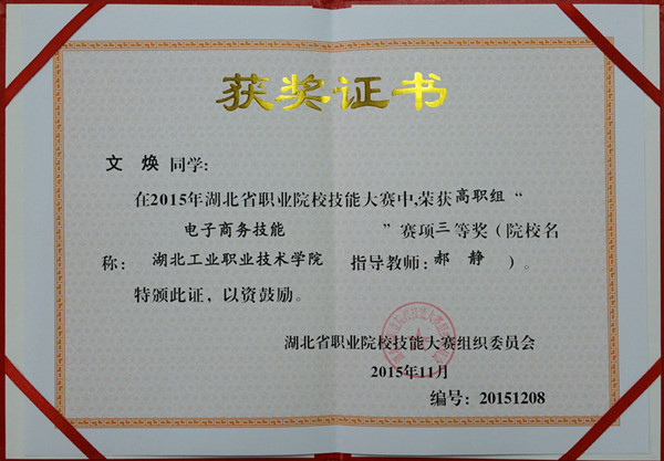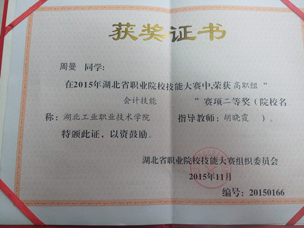 新闻网讯(通讯员 郝静 玉声)11月22日,湖北省职业院校技能大赛圆满落幕,经济贸易系2013级会计专业马金凤、周曼、黄静茹、黄君怡四名同学组成的参赛代表队喜获第二名,2014级电子商务专业陈成、文焕、杨王键、韩正喜四名同学组成的参赛代表队夺得第三名的好成绩。