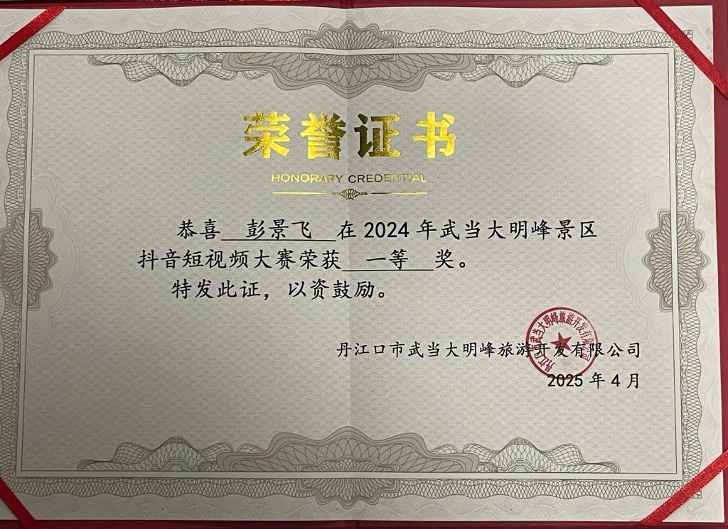 本次大赛以“展现武当大明峰自然与人文魅力”为主题,吸引了众多短视频创作者参与。彭景飞团队立足十堰本土文化,聚焦“景美、人和”核心亮点,深入挖掘景区文化内涵,运用专业拍摄与剪辑技术,以新颖的叙事视角赢得评委一致好评。
