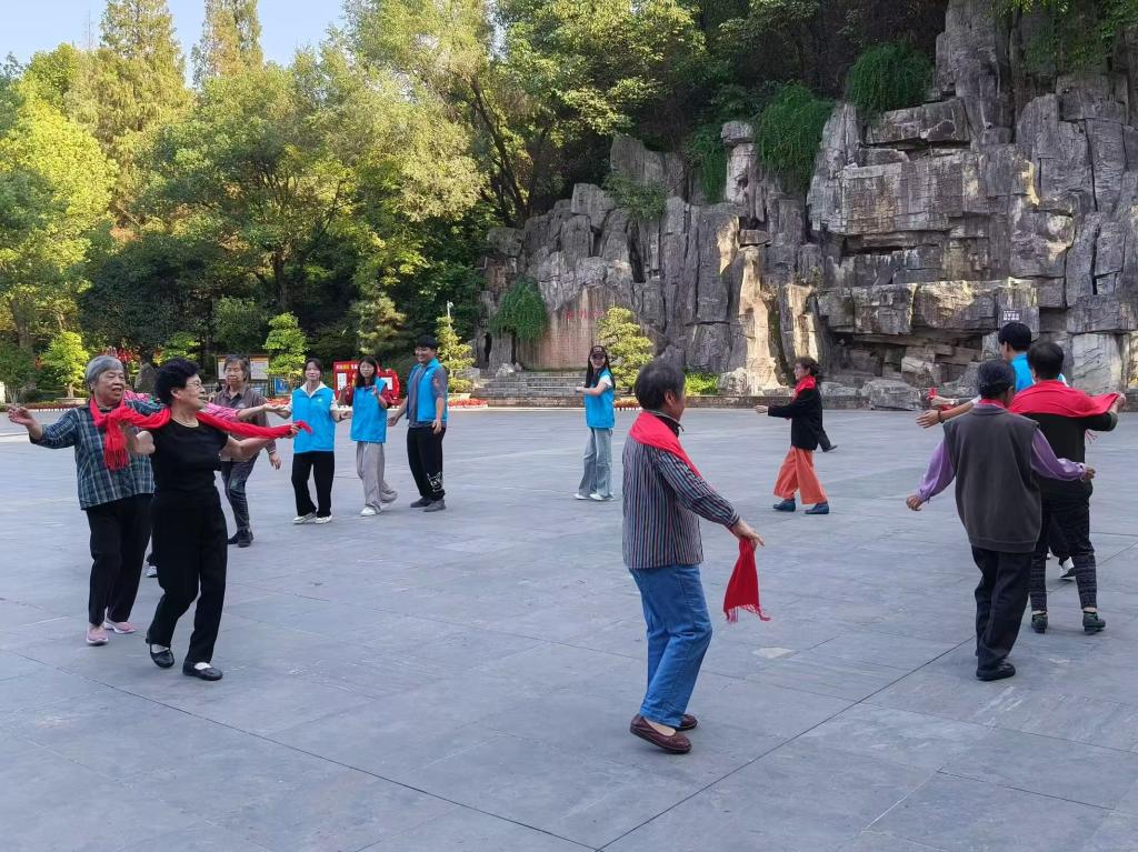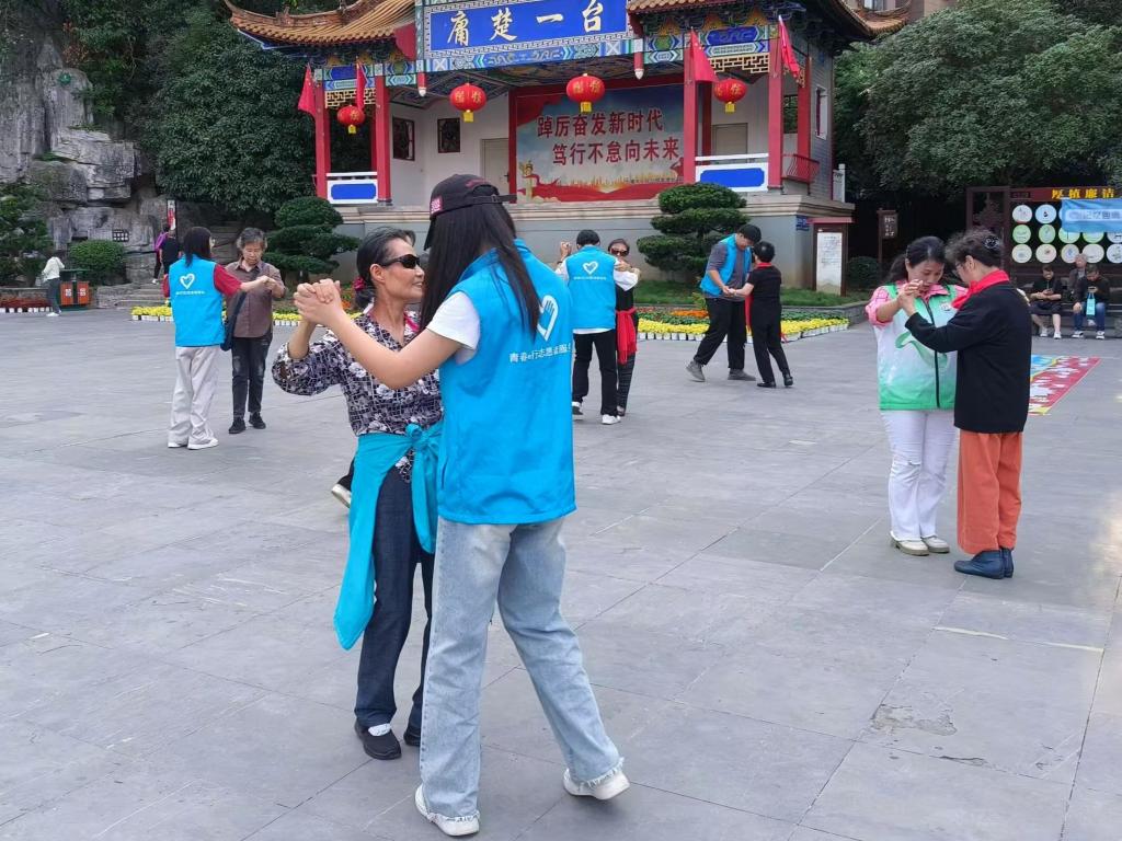 此前,还有公司青春e行志愿者服务队于10月9日协助惠湾社区工作人员在十堰市人民公园开展“有爱无碍,亿起加油”的活动,陪伴老人们在人民公园登高望远、赏菊、唱红歌、跳舞等,为老人送上重阳节的糕点,帮助他们拍照留念。
